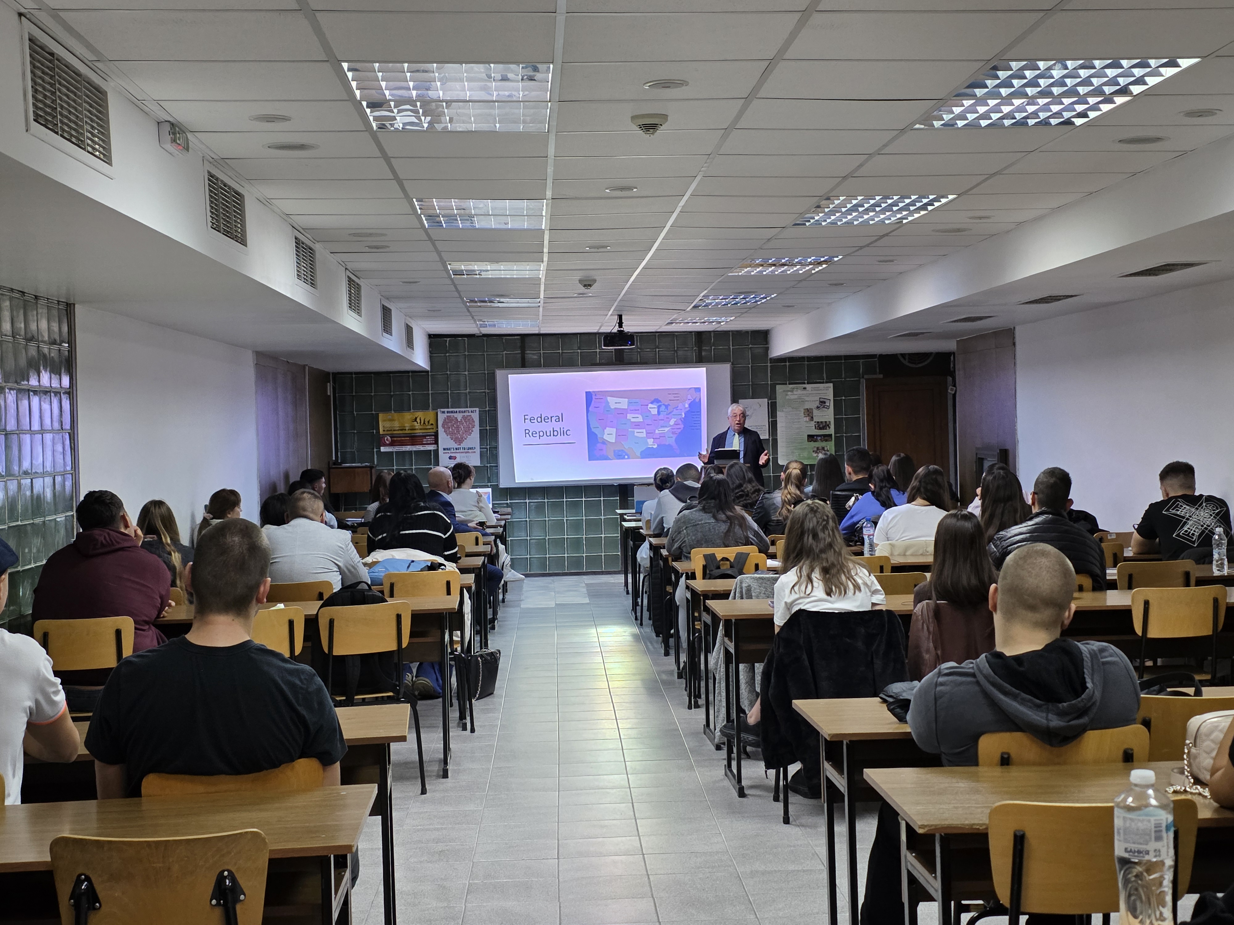 През периода 27.09. – 10.10.2025 г. проф. Робърт Олсън от Лос Анджелис, САЩ изнесе цикъл от лекции, посветени на американското право. Посещението се осъществи благодарение на традиционното сътрудничество на Правно-историческия факултет с Центъра за международноправни изследвания в Залцбург, Австрия (CILS).